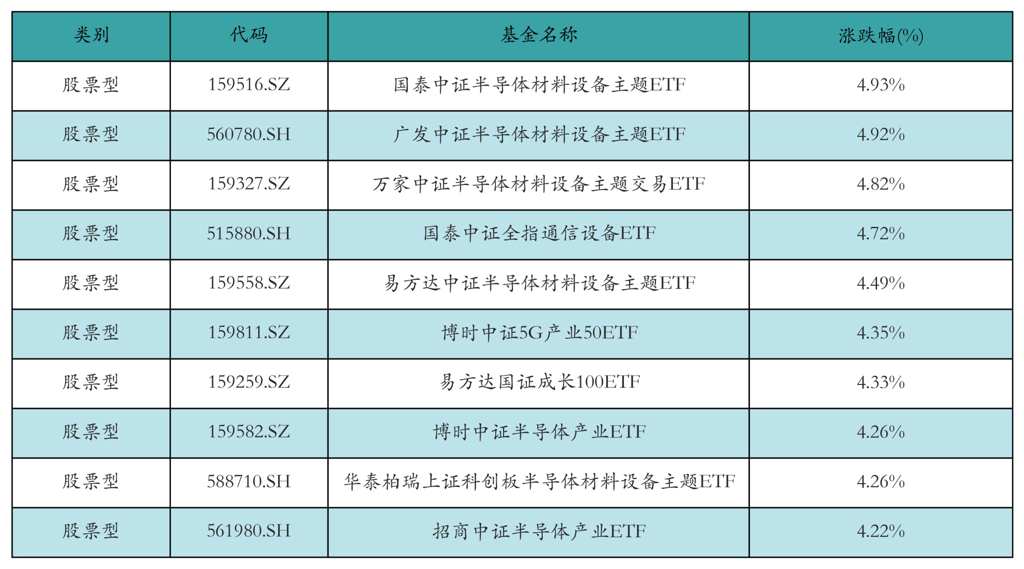 (原標(biāo)題:多只半導(dǎo)體材料設(shè)備ETF漲超4%丨ETF基金日?qǐng)?bào))