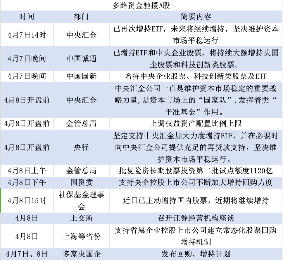 六個月后,這一角色明確為中央?yún)R金。中央?yún)R金有關(guān)負(fù)責(zé)人在4月8日的問答中表示,中央?yún)R金公司一直是維護資本市場穩(wěn)定的重要戰(zhàn)略力量,是資本市場上的“國家隊”,發(fā)揮著類平準(zhǔn)基金作用。