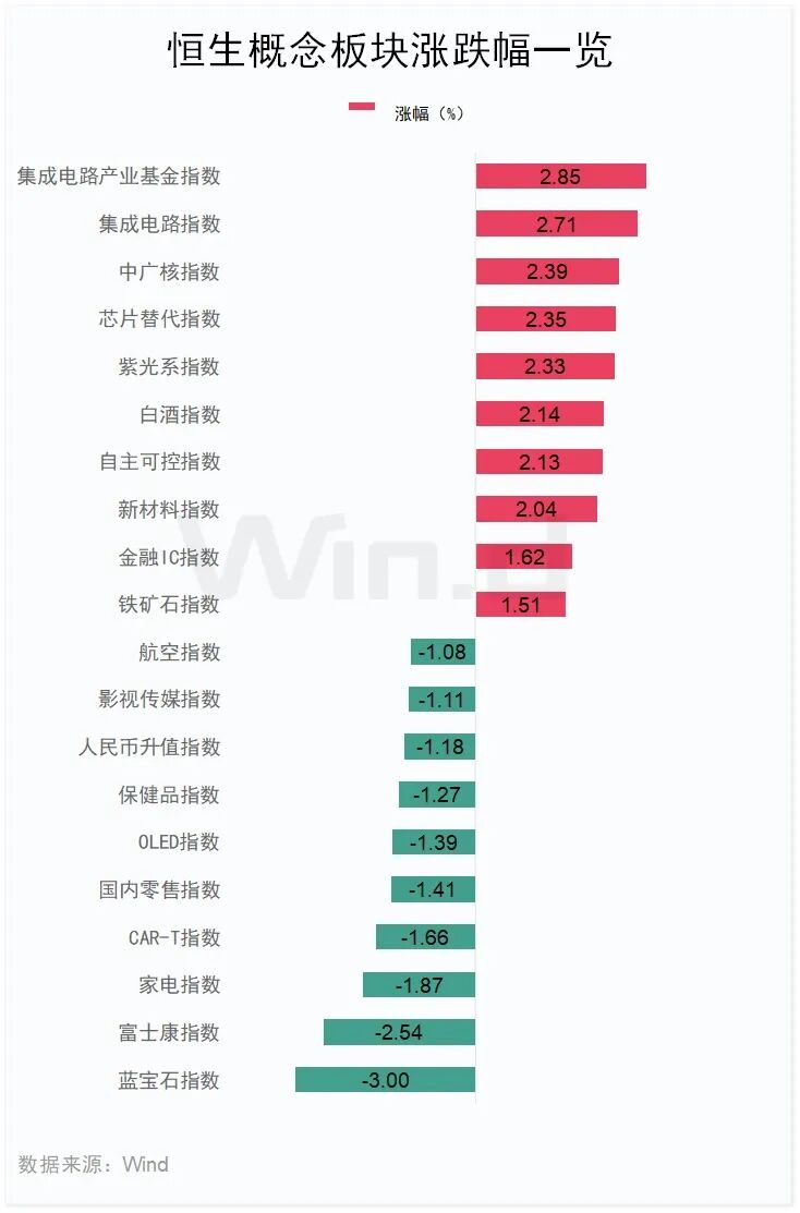 從盤面來看,Wind概念板塊漲跌不一,集成電路產(chǎn)業(yè)基金指數(shù)漲2.85%,集成電路指數(shù)漲2.71%,中廣核指數(shù)漲2.39%;藍寶石指數(shù)跌3%,富士康指數(shù)跌2.54%,家電指數(shù)跌1.87%。