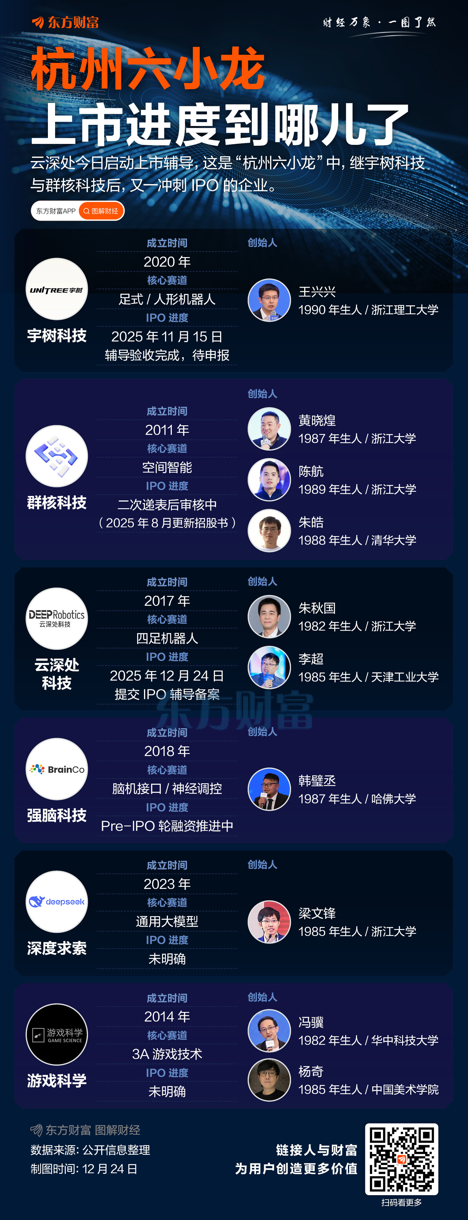 云深處啟動上市輔導(dǎo),意味著繼群核科技遞表港交所、宇樹科技在11月末完成IPO輔導(dǎo)以來,又一家“杭州六小龍”啟動IPO輔導(dǎo)。
