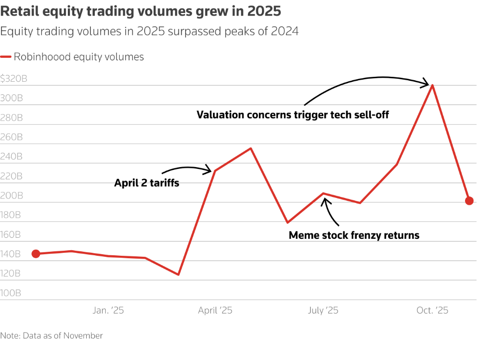 (原標(biāo)題:2025年美國(guó)散戶炒股資金破紀(jì)錄,倒逼華爾街機(jī)構(gòu)跟風(fēng)!)
