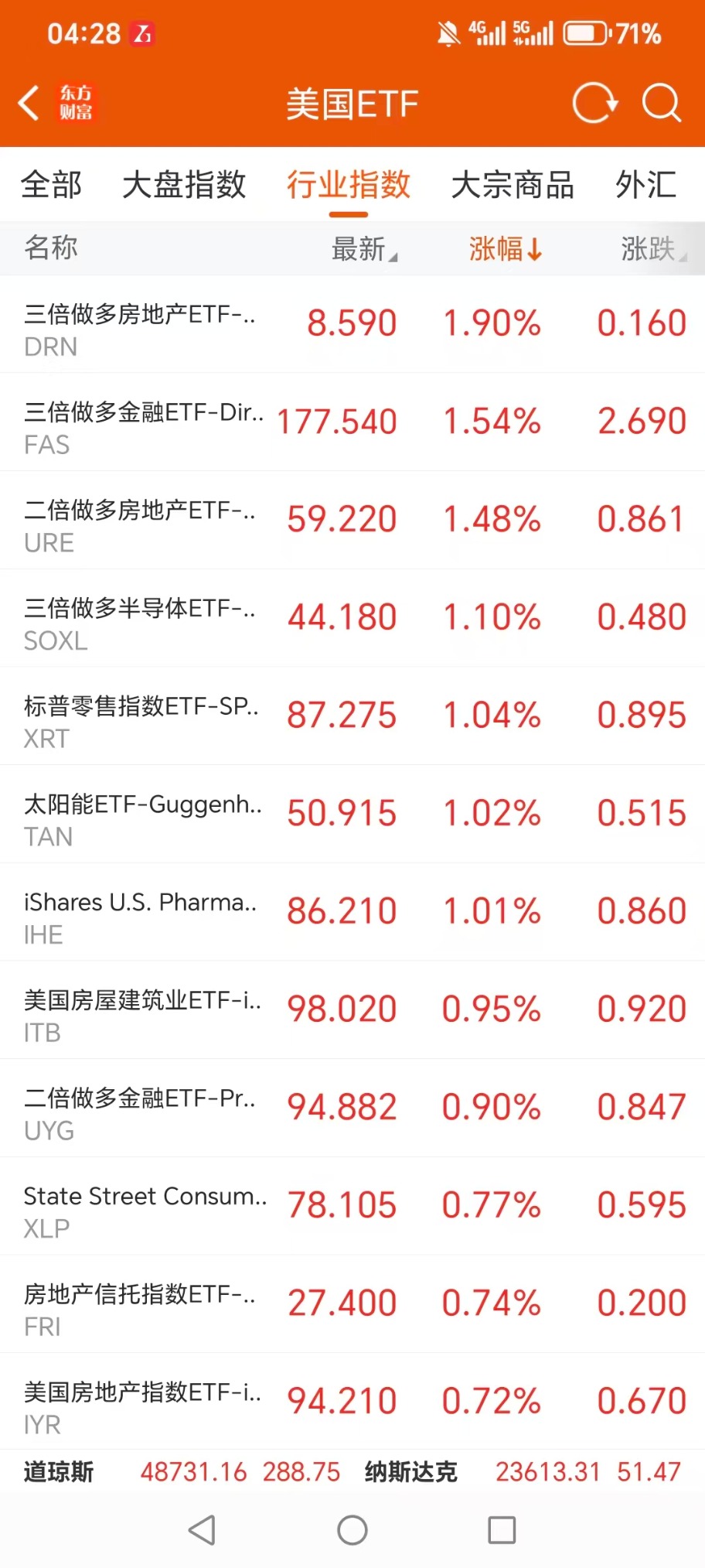 三倍做多房地產(chǎn)ETF-Direxion(DRN.US) 升1.84%,成交額229.2萬美元。