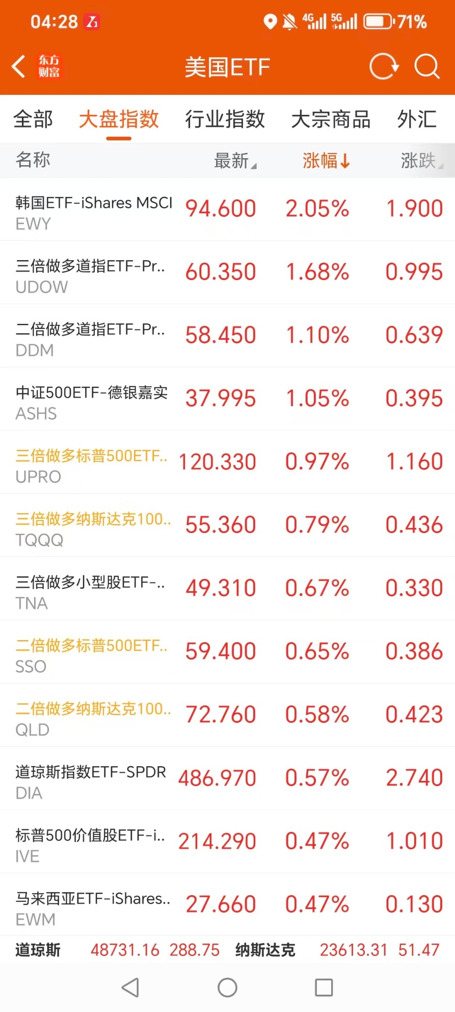 三倍做多標普500ETF-ProShares(UPRO.US) 升0.95%,成交額2.05億美元。
