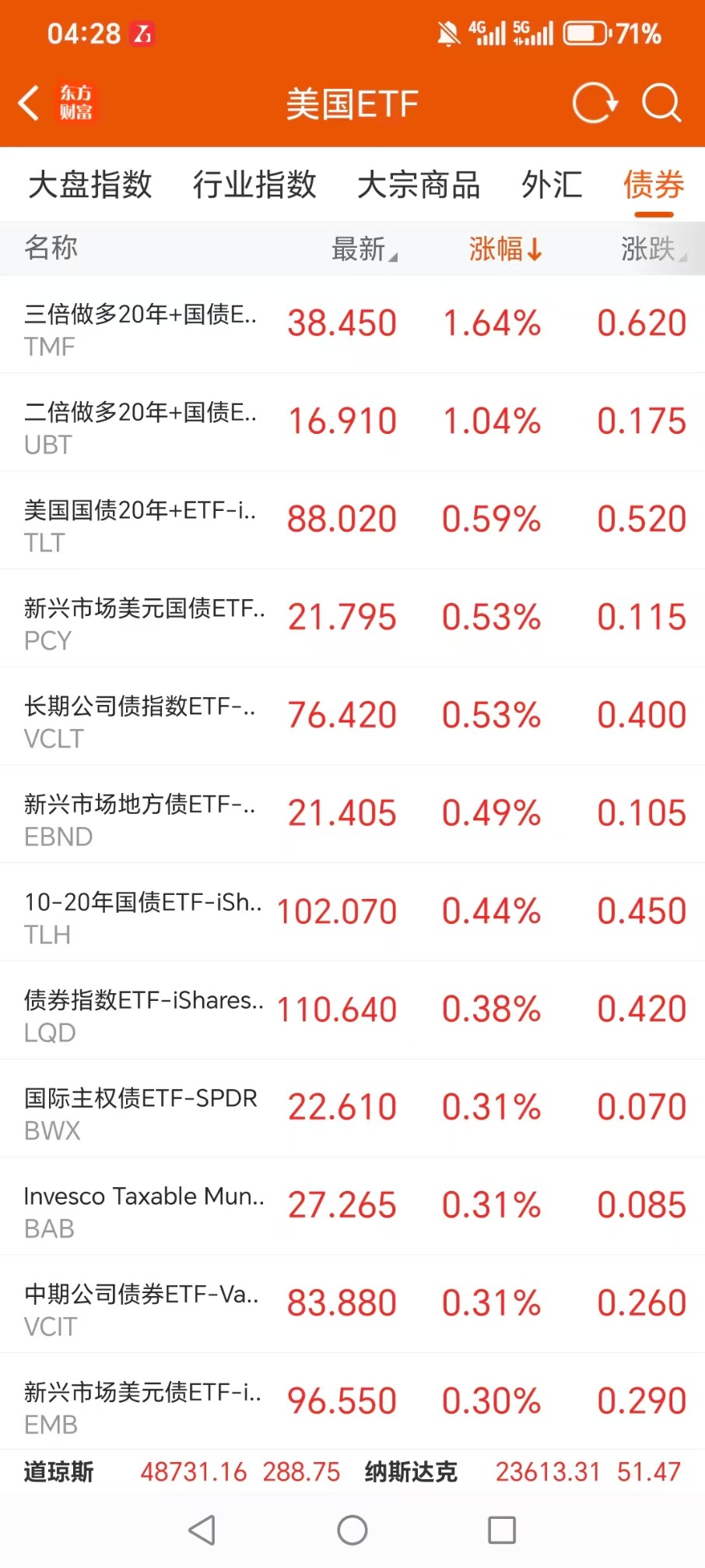 三倍做多20年期以上國債ETF-Direxion(TMF.US) 升1.64%,成交額1.22億美元。