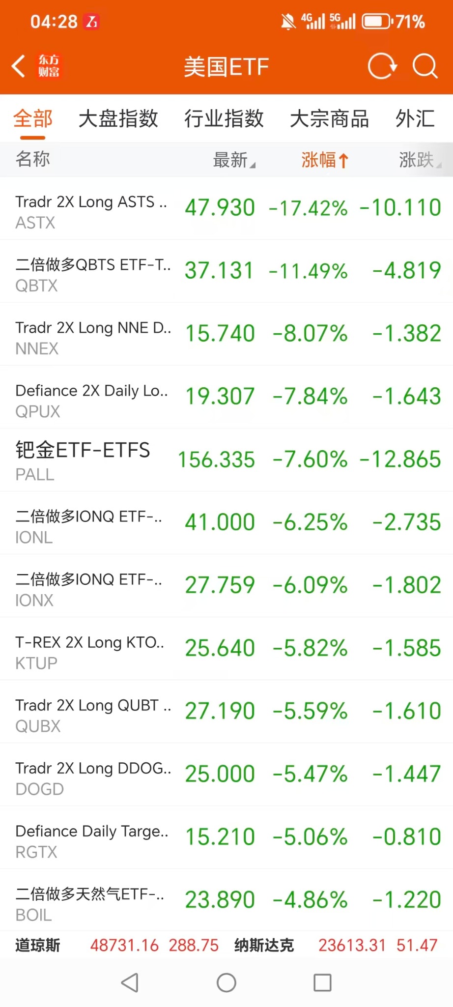 2倍做多ASTS ETF-Tradr(ASTX.US) 跌18.23%,成交額1.89億美元。