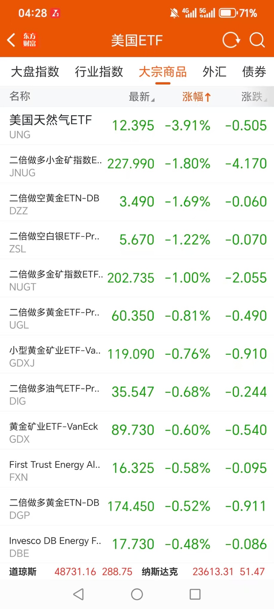 美國天然氣ETF(UNG.US) 跌3.91%,成交額1.28億美元。