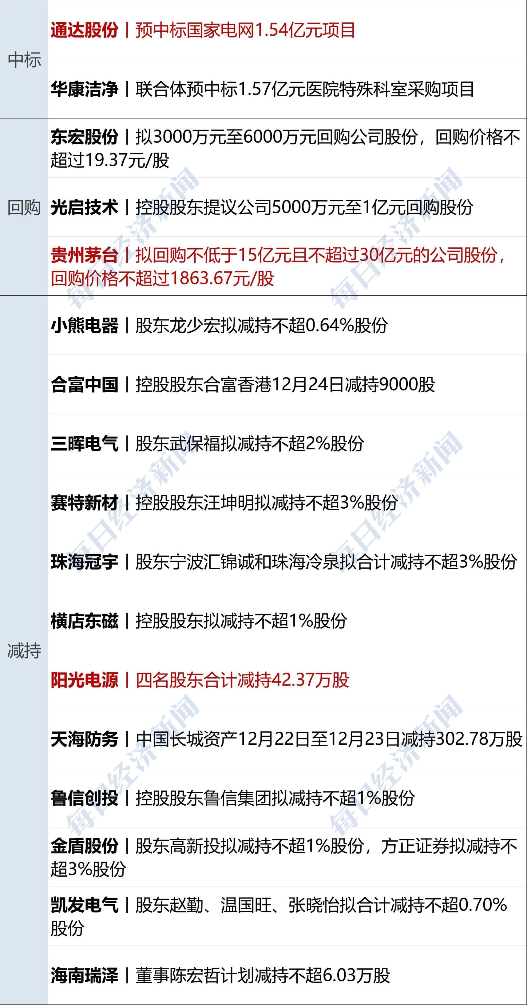 12月24日,央行公告,為保持銀行體系流動性充裕,2025年12月25日,中國人民銀行將以固定數(shù)量、利率招標(biāo)、多重價(jià)位中標(biāo)方式開展4000億元MLF操作,期限為1年期。同日,央行公告稱,以固定利率、數(shù)量招標(biāo)方式開展了260億元7天期逆回購操作,操作利率為1.4%。因今日有468億元7天期逆回購到期,實(shí)現(xiàn)凈回籠208億元。