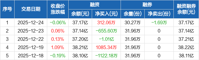 恒生ETF融資融券信息顯示,2025年12月24日融資凈買(mǎi)入312.06萬(wàn)元;融資余額37.17億元,較前一日增加0.08%。