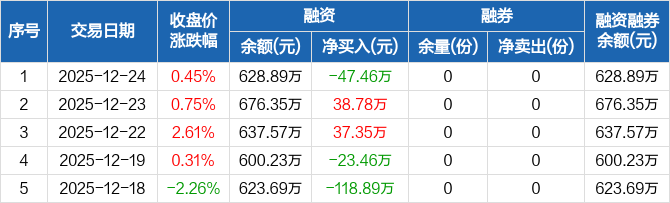 融資方面,當(dāng)日融資買入163.42萬(wàn)元,融資償還210.88萬(wàn)元,融資凈償還47.46萬(wàn)元。融券方面,融券賣出0份,融券償還0份,融券余量0份,融券余額0元。融資融券余額合計(jì)628.89萬(wàn)元。