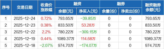 2025年12月24日創(chuàng)業(yè)板ETF華夏融資凈償還39.85萬元,融資余額793.65萬元