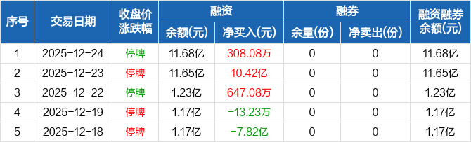 融資方面,當(dāng)日融資買入612.78萬元,融資償還304.71萬元,融資凈買入308.08萬元,連續(xù)3日凈買入累計10.52億元。融券方面,融券賣出0份,融券償還0份,融券余量0份,融券余額0元。融資融券余額合計11.68億元。