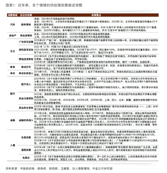實際上,近年來清理消費領(lǐng)域限制性舉措的政策漸進推進,釋放消費潛力。我們整理了一些代表性消費領(lǐng)域的政策變化(圖表1):