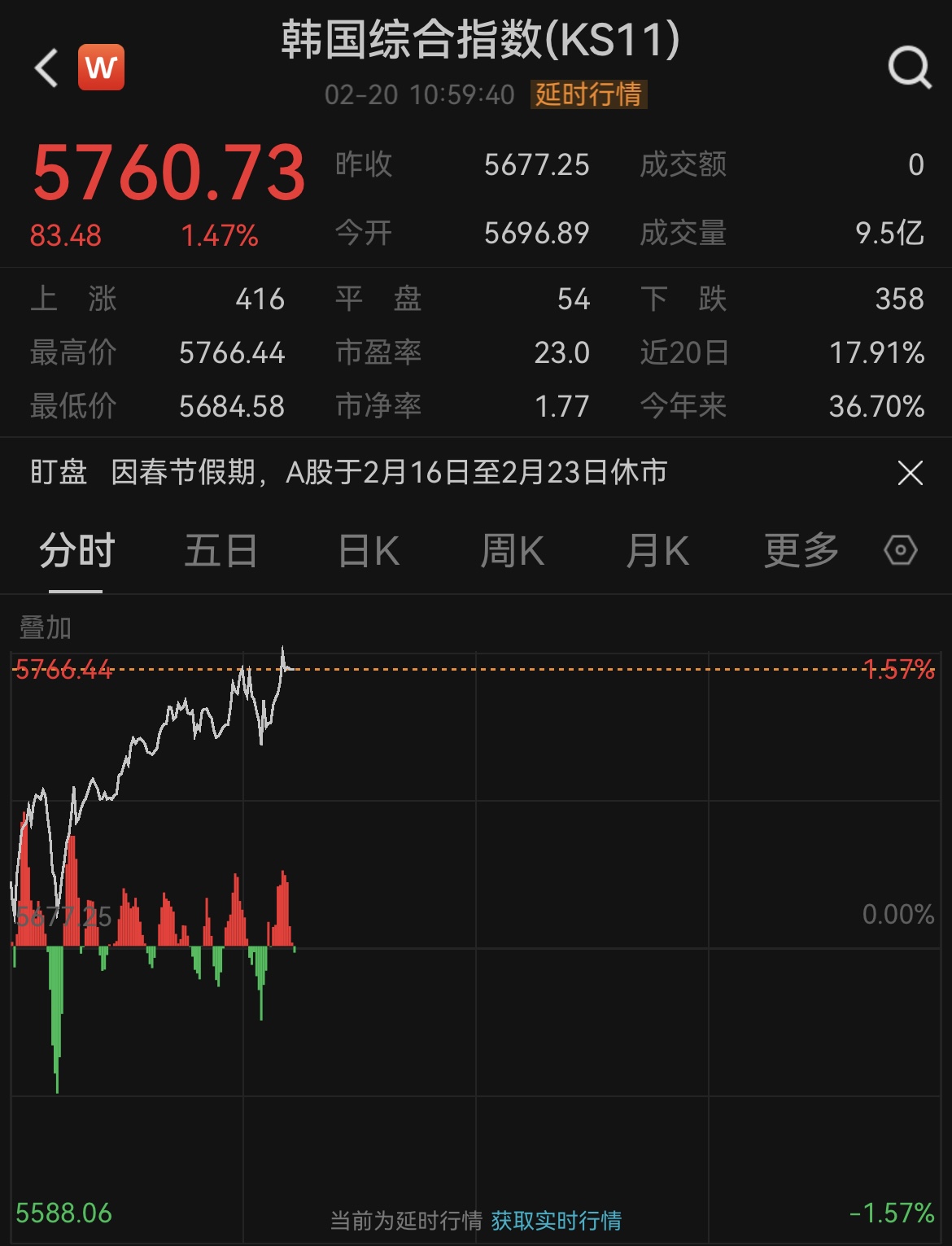 韓國(guó)綜合指數(shù)開(kāi)盤漲幅0.27%,截至發(fā)稿,上漲1.47%觸及5760.73點(diǎn),創(chuàng)下歷史新高。