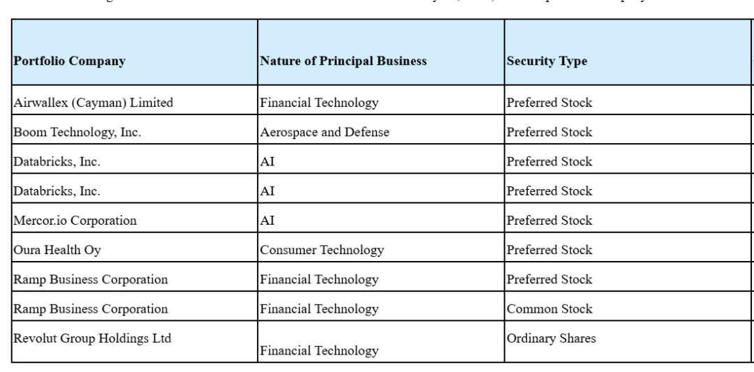 公告稱(chēng),截至2026年1月31日,RVI的底層資產(chǎn)已經(jīng)鎖定7家企業(yè),包括Databricks、Revolut、Mercor、Airwallex、Oura、Ramp和Boom Supersonic。此外,RVI已簽署協(xié)議在IPO后購(gòu)入Stripe股份,預(yù)計(jì)交割后將加入持倉(cāng)。