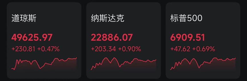 或受經(jīng)濟(jì)數(shù)據(jù)影響,美股當(dāng)日低開。隨著特朗普政府大規(guī)模關(guān)稅被判定違法的消息出爐,美股三大指數(shù)反彈并最終收漲。截至收盤,道指漲230.81點(diǎn),漲幅0.47%,報(bào)49625.97點(diǎn);納指漲203.34點(diǎn),漲幅0.90%,報(bào)22886.07點(diǎn);標(biāo)普500指數(shù)漲47.62點(diǎn),漲幅0.69%,報(bào)6909.51點(diǎn)。