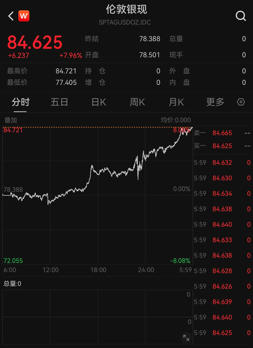 商品市場方面,黃金、白銀再度強(qiáng)勢。截至收盤,倫敦現(xiàn)貨黃金漲逾2%,倫敦現(xiàn)貨白銀漲近8%。