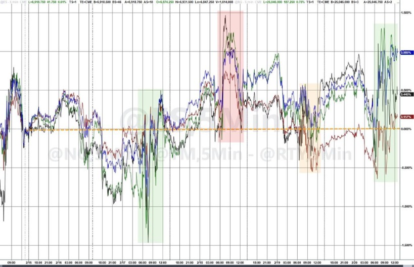 周五美國最高法院裁定特朗普關稅違法,市場預期企業(yè)未來利潤率壓力減輕,風險偏好情緒推動美股盤中拉漲,全日顯著震蕩后三大股指均收漲。標普500指數(shù)上漲0.7%,本周累漲1.07%,創(chuàng)1月9日以來最佳單周表現(xiàn)。