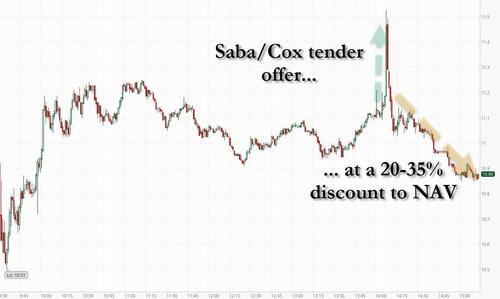 不出所料,在Saba提出收購要約的消息傳出后,Blue Owl的股價飆升,但隨后隨著市場仔細(xì)閱讀條款并發(fā)現(xiàn)擬議的收購要約折扣,股價大幅下跌。