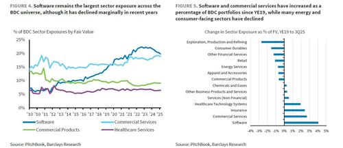 軟件行業(yè)貸款近期成為私募信貸行業(yè)的重大風(fēng)險點(diǎn)。隨著人工智能技術(shù)進(jìn)步威脅傳統(tǒng)軟件公司的商業(yè)模式,投資者和分析師對大型私募信貸集團(tuán)向這些公司提供貸款的前景提出質(zhì)疑。軟件行業(yè)是BDC行業(yè)最大的敞口領(lǐng)域,近幾個月該行業(yè)市值已蒸發(fā)1萬億美元。